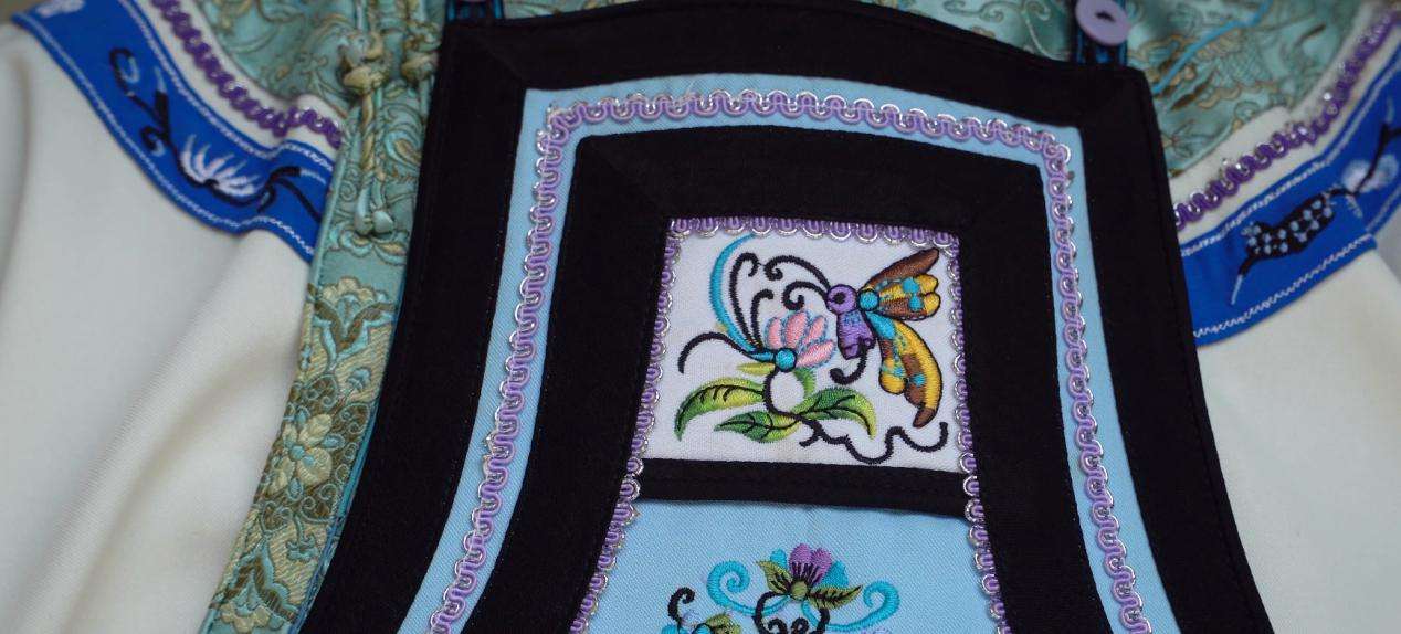 紅星村村內(nèi)布依族村民保留有布依族傳統(tǒng)服飾,在日常生活中也還有穿著布依族服飾的習(xí)慣。紅星村布依族女性服飾做工精細,款式多樣。老人頭戴黑色圓帽,上身主要穿著灰白色斜襟上衣和青藍色打底的圍腰,上衣領(lǐng)口至兩肩處繡有大面積花紋圖案,圍腰上部也繡有花紋圖案作為裝飾。圍腰上的兩條絲帶系于身后,絲帶上繡有花紋圖案。下身穿著灰色長褲。