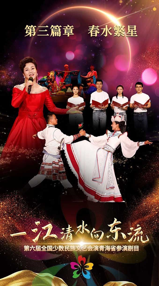 歌舞晚會《一江清水向東流》牢牢把握青海省情特點,圍繞生態(tài)環(huán)境保護、民族團結進步、地區(qū)長治久安等內容,堅持思想精深、藝術精湛、制作精良的原則,不斷升華晚會的政治意義、藝術內涵、文化內涵和時代內涵,切實把鑄牢中華民族共同體意識貫穿于文藝創(chuàng)作全過程,向全國人民展示青海各民族傳統(tǒng)文化的獨特魅力。