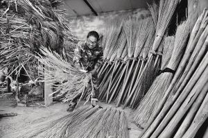 制作芨芨草掃把的吳扎拉堅