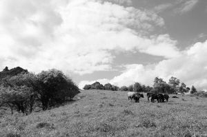 甘南的天空分外藍(lán),白云像輕紗一樣在空中飄蕩,河水從西面湍急而下,沖刷著鵝卵石,發(fā)出嘩嘩的擊打聲,和簌簌的風(fēng)聲一起,在空曠的草原上合奏出輕快的樂(lè)曲。都說(shuō)高原的天氣瞬息多變,剛剛還藍(lán)天白云透著明媚的陽(yáng)光,突然云量增多,將太陽(yáng)完全遮擋住,一陣急風(fēng)掠過(guò),一場(chǎng)不速之“雨”傾盆而下,瞬間淋濕了迷戀美景的游人,躲閃不及的人們無(wú)所適從,放羊的牧民也急匆匆地收拾著晾曬的衣服,動(dòng)作敏捷而熟練,看得出來(lái)他們?cè)缫蚜?xí)慣了這樣的天氣。