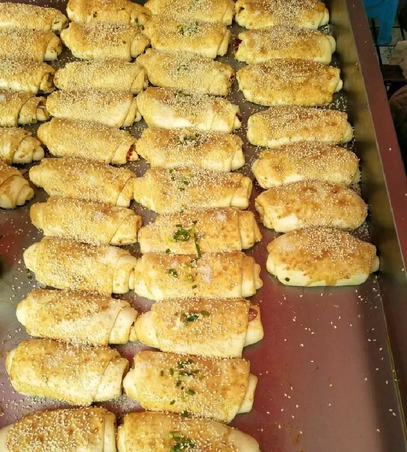 外表黃澄澄,撒著一層芝麻,一口咬開(kāi),里面的辣椒、香腸、肉末是否讓您食指大動(dòng)呢?