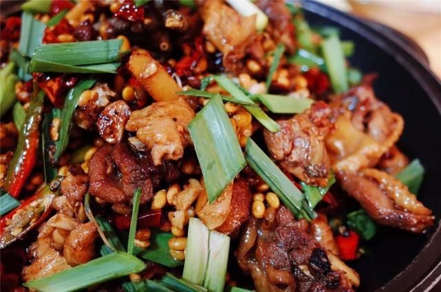 一道美味的黃豆雞端上桌來(lái)。