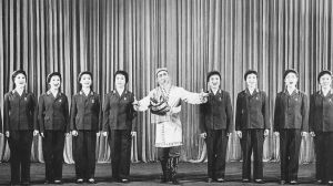 在簡陋的營房里演出完,克里木發(fā)現(xiàn)還有兩個戰(zhàn)士在哨樓上值班,就帶兩個演員上哨樓演出。他們還帶了一束路上采的野花,準(zhǔn)備獻(xiàn)給為國戍邊的可愛的人。