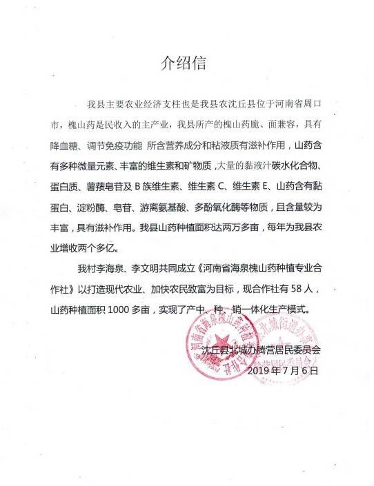 因?yàn)椤盎比龑殹钡男б婷黠@,合作社于2013年成立之初吸納社員102戶,種植面積達(dá)1000多畝。2014年5月,“槐三寶”商標(biāo)順利通過國家農(nóng)業(yè)部無公害農(nóng)產(chǎn)品認(rèn)證和無公害農(nóng)產(chǎn)品標(biāo)識(shí)使用權(quán),基地獲河南省農(nóng)業(yè)廳無公害農(nóng)產(chǎn)品產(chǎn)地認(rèn)定。發(fā)展到現(xiàn)目前,2019年,其種植面積已經(jīng)超過4000畝,產(chǎn)量在5500噸以上。據(jù)合作社監(jiān)事李文明講:“今年沒澇,現(xiàn)在七月,山藥快成熟了,可以預(yù)見,是個(gè)豐收年?!薄?/p>