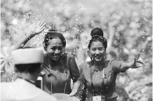 4月15日,潑水狂歡活動在景洪市潑水廣場舉行。各族群眾用相互潑水的方式互送祝福、傳遞歡樂。