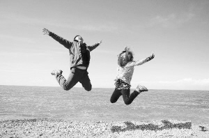 青海湖位于青海省海北藏族自治州剛察縣南部,是中國最大的內(nèi)陸咸水湖。碧波浩瀚,鳥翼如云的青海湖,盛夏時節(jié)平均氣溫僅15攝氏度,為天然避暑勝地。圖為游客在青海湖畔縱身躍起。 吳光于攝