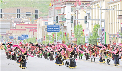街頭巡游的格薩爾藏戲方隊