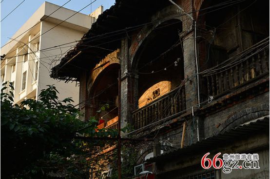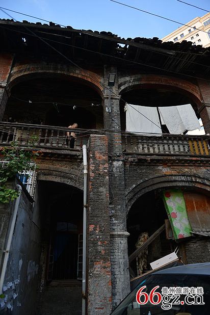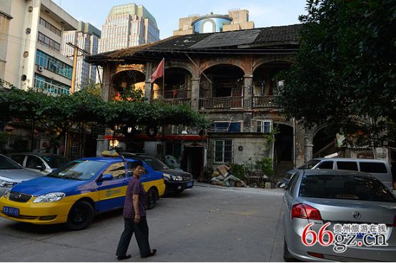在中華北路主大街中段,穿過一個百米左右的小巷子,沿著一個小斜坡往上,盡頭一個寬敞的大院子就是“毛公館”。但是比起貴陽現(xiàn)存的其他民國建筑,“毛公館”顯得殘破不堪。如今的大院已看不出任何歷史文化古跡的痕跡,“毛公館”周邊已經(jīng)被兩個小高層建筑包圍,大院邊是一棟富麗堂皇的銀行辦公大樓和一棟證券大樓,相比起來,“毛公館”的存在顯得與這個城市格格不入。