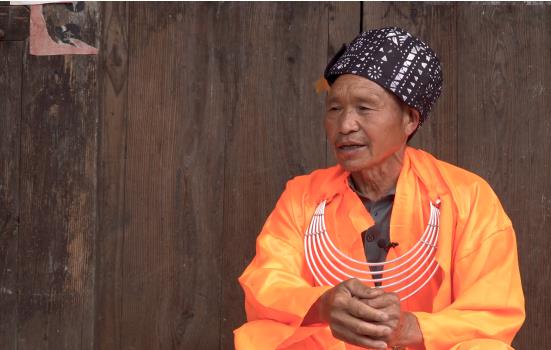 谷灑村的苗族為背牌苗,當(dāng)?shù)赜肿苑Q高坡苗。背牌苗的得名,來源自背牌苗的服飾。背牌苗男子服飾分為兩種,一種是鬼師服飾。鬼師服飾為橘黃色斜襟長(zhǎng)衫,胸前帶銀項(xiàng)圈,頭部帽子是用帶有白色圖案的黑色布帶圍繞頭部而成。
