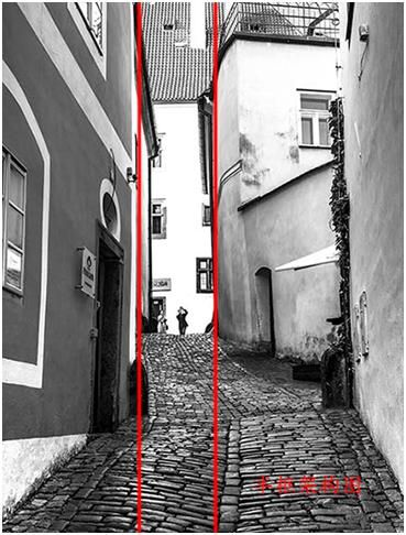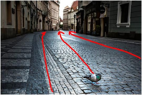 這張圖是布拉格阿的一個(gè)早晨,大概是早上五點(diǎn)多鐘,路上很安靜,天開(kāi)始蒙蒙亮,我就拍了一張很安靜的街道,首先看到的興趣點(diǎn)是一只鴿子。路面形成的引導(dǎo)線以及通過(guò)路面反光形成的引導(dǎo)線來(lái)達(dá)到的,把目光從這只鴿子引向遠(yuǎn)方。