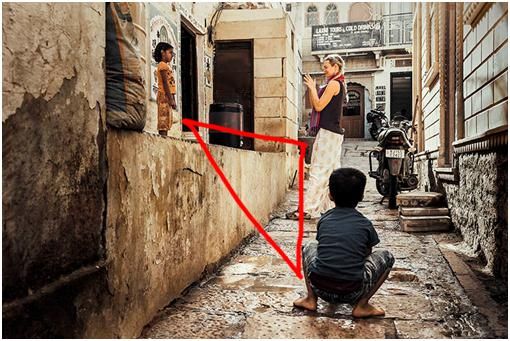 上面這張照片是西方游客在給印度小女孩拍照,這也是一個(gè)街拍照片,我其實(shí)比較喜歡這張照片,我同時(shí)拍了好幾張。如果畫(huà)面中沒(méi)有前面蹲著的這個(gè)小男孩作為襯托,整個(gè)畫(huà)面就削弱了許多,畫(huà)面就沒(méi)有那么生動(dòng)。