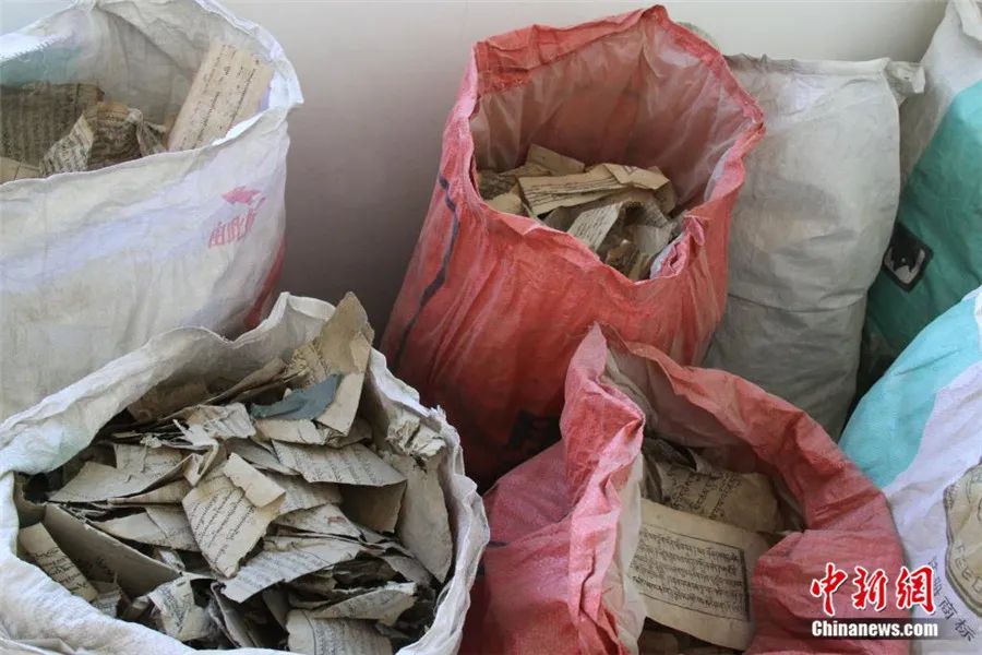 挖掘工作持續(xù)了3天才結(jié)束。由于當(dāng)時(shí)寺院條件簡(jiǎn)陋,古籍散葉被臨時(shí)裝入編織袋中,足足裝滿了68袋。