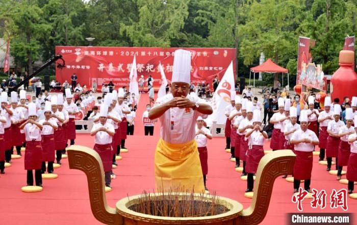 11日上午,2021第十八屆中國彭祖伏羊節(jié)在江蘇徐州彭祖園舉行開幕式,徐州當(dāng)?shù)卦俅纬尸F(xiàn)一年一度的“萬人空巷吃伏羊”民俗奇觀。作為中國彭祖伏羊節(jié)開幕式的重頭戲,來自全國各地數(shù)百名烹飪大師再次齊聚彭祖祠共同祭拜華夏烹飪鼻祖彭祖。烹飪大師們統(tǒng)一著裝,整齊列隊,行叩拜大禮,聲勢浩大,莊嚴(yán)肅穆,十分壯觀。