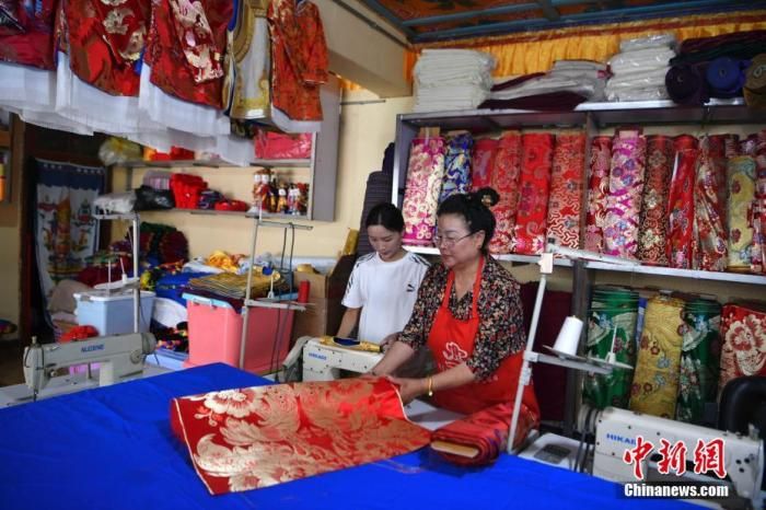 如今,年輕的邊宗正式繼承了母親提美的衣缽,成為藏服制作傳承人。邊宗一邊縫制衣服一邊對記者說,藏服工序繁雜,一會兒要手工,一會兒又要裁剪,一會兒又機器縫……
