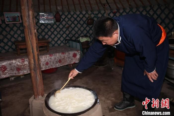 圖為多年前,貸慶在蒙古包里制作傳統(tǒng)奶食品?!∈茉L者供圖