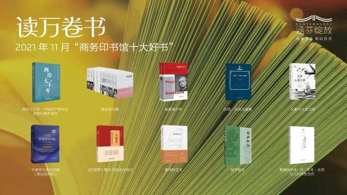 2021年11月“商務(wù)印書(shū)館十大好書(shū)”8日晚在直播間發(fā)布,《兩岸七十年:中國(guó)共產(chǎn)黨對(duì)臺(tái)決策與事件述實(shí)》《陳志華文集》《波德萊爾傳》《法律、自由與道德》《元素與人類(lèi)文明》《牛津?qū)W術(shù)英語(yǔ)詞典(英漢雙語(yǔ)版)》《<紅樓夢(mèng)>整本書(shū)閱讀與研討》《善終的藝術(shù):應(yīng)對(duì)衰老、病痛、死亡的實(shí)用指南》《荀學(xué)新論》《萊奧納爾多·達(dá)·芬奇:自然與人的驚世杰作》入選。