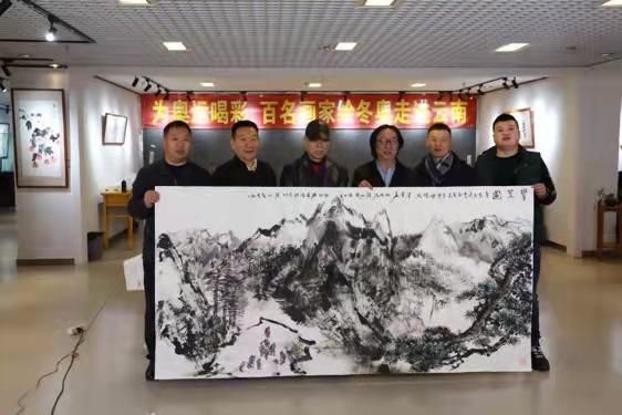 云南省人大常委會(huì)原常務(wù)副主任晏友瓊,云南省文聯(lián)原黨組書記、主席鄭明,云南省文聯(lián)副主席、云南省美術(shù)家協(xié)會(huì)主席羅江,云南省美協(xié)原副主席孫建東,云南省美協(xié)原中國畫藝委會(huì)主任楊為民,昆明學(xué)院美術(shù)與藝術(shù)設(shè)計(jì)學(xué)院教授武新文,國家一級(jí)美術(shù)師楊正國、邵培德,云南省美協(xié)陶瓷藝委會(huì)副主任楊忠文,國家一級(jí)美術(shù)師梁漢森等藝術(shù)家參加本次活動(dòng)。他們分兩組分別合作創(chuàng)作了花鳥畫《錦上添花》和山水畫《攀登圖》。