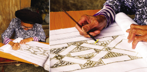 村里仍有年過古稀的老人忙著繪制蠟染紋樣。