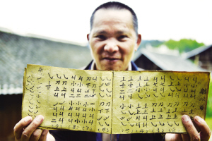 貴州省榕江縣仁里水族鄉(xiāng)仁吉侗寨發(fā)現(xiàn)的蘆笙曲譜,是用類似象形文字的符號(hào)記錄的,共有13個(gè)符號(hào)。每一個(gè)符...