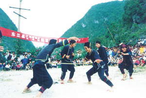日前,廣西大化瑤族自治縣七百弄鄉(xiāng)和東蘭縣三弄瑤族鄉(xiāng)的布努瑤同胞分別舉行隆重的活動,慶祝自己的民族傳統(tǒng)節(jié)日“祝著節(jié)”。“祝著節(jié)”,亦稱祖娘節(jié)、二九節(jié)、盤古節(jié)或瑤年,是瑤族人民隆重的節(jié)日之一。這天,布努瑤同胞表演了一臺臺古色古香的文藝節(jié)目。當(dāng)?shù)馗髯迦罕姾团忇l(xiāng)鎮(zhèn)的農(nóng)民朋友也匯集一堂,和布努瑤兄弟姐妹一道慶賀這個盛大的民族節(jié)日。