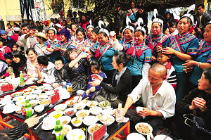 “中國(guó)紅河·元陽2009年哈尼梯田文化旅游節(jié)”上,哈尼族群眾擺下360桌、近0.5公里長(zhǎng)的哈尼族長(zhǎng)街宴,用最隆重的禮儀和風(fēng)味美食,迎接來自海內(nèi)外的賓客。