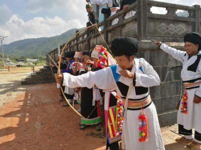 比賽形式有粑粑打、射雞蛋、射刀刃等。粑粑打,每當(dāng)過年時(shí),怒江傈僳族都要舉行射弩比賽,射手每人出幾塊包谷粑粑作靶子放在 50 步開外用弩弓射擊,射中贏得粑粑,每人射 5 箭,年成好時(shí)用成塊的肉作靶子.體積比粑粑小得多,射中者意味著新的一年財(cái)運(yùn)好,打獵收獲大。射弩男人為主,女人也時(shí)有參加。最后大家把獎(jiǎng)品拿出來,加之以酒,暢飲大吃,以歌助酒,盡歡而散。射雞蛋。流行于怒江峽谷各地,多在“盍什”節(jié)或正月間的澡堂歌會(huì)時(shí)舉行。作為靶子的雞蛋不是放在地上,而是置于姑娘們的頭上,她們每個(gè)人頭上頂一個(gè)碗,碗中放上米,雞蛋放在米上,射手距姑娘的距離 10 米、 30 米、 50 米不等,要看雙方的膽最和技術(shù),箭風(fēng)過處,雞蛋在頭頂破碎。流行于怒江和麗江傈僳族中的射刀,時(shí)間在春節(jié),距射者 20 米處立長刀一把,刀刃朝射弩者。如中刀口,弩箭自然剖成兩半,如射不中;箭就輸給勝者。另有村寨對(duì)抗,用粑粑和豬頭為箭靶。參加者數(shù)十或上百,均分兩隊(duì),以相同的箭數(shù)中靶多少定勝負(fù),勝者贏得粑粑和豬頭,大家同享。