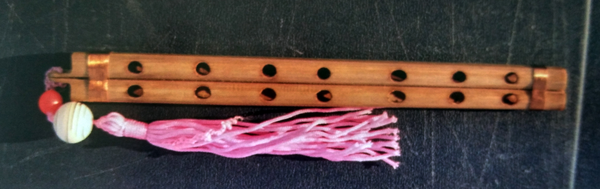 羌笛是一種吹管樂器,歷史悠久。羌笛至今已有兩千余年歷史。據(jù)史載,西漢前,羌笛面上有四孔,公元一世紀(jì)由京房加一高音按孔,為五孔。東漢馬融在《長(zhǎng)笛賦》就曾有“近世雙笛從羌起”的記述,唐代亦有“羌笛何須怨楊柳”的名句。發(fā)展到近代羌笛已成六孔。2006年5月“羌笛演奏及制作技藝”被列入《第一批國(guó)家級(jí)非物質(zhì)文化遺產(chǎn)目錄》。羌笛在羌語中稱為“其篥”“士布里”或是“幫”,是一種古老的民間豎吹樂器。它由兩根長(zhǎng)約15—20厘米,直徑1厘米左右,筒孔大小一致的竹管并在一起,用絲線纏繞,管頭插著竹簧。管身竹制或骨制,由發(fā)音簧哨和方筒形管體組成。兩管長(zhǎng)短、孔距和音高相同。管上設(shè)五個(gè)或六個(gè)按孔。演奏時(shí),雙手持笛,將簧哨含入口內(nèi),用特殊的“鼓腮換氣法”吹奏,指法與笛相同。制作羌笛一般選用箭竹,并根據(jù)筒管的長(zhǎng)短、厚薄及筒管大小測(cè)定音準(zhǔn),孔距必須精確相等,否則音準(zhǔn)不一。