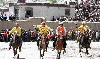藏歷4月10日到28日,是江孜傳統(tǒng)的節(jié)日—達瑪節(jié),藏語意為跑馬射箭。據(jù)傳說江孜法王繞丹貢桑帕巴桑布,是薩迦王朝的內務大臣,又是江孜法王,在群眾中頗有威望。帕巴白去世后,他的弟子每年做祭祀,以示紀念。后因戰(zhàn)亂,祭祀中斷。至藏歷火鼠年(公元1408年)繞丹貢桑帕任江孜法王,遵其父貢桑帕的遺囑,恢復祭祀。這一年藏歷4月10日至4月27日,繞丹貢桑帕為其祖父念經祭祀,直到28日,開始進行娛樂活動。內容主要是曬唐卡畫、宗教文藝活動等。除此之外,還有角力、跑馬、拋石頭等娛樂活動。這些活動,全由法王的部下、兵丁、傭人承辦。從這年開始,固定這段時間為每年一度的祭祀盛典節(jié)日。到了扎西繞丹帕(公元1447年)統(tǒng)轄江孜的時候,娛樂活動更為豐富,除上述內容外,還增加了跑馬射箭。于是流行為盛大的江孜達瑪節(jié)。