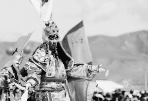 為觀眾表演《格薩爾》藏戲。 郭求達攝