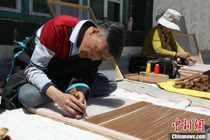 資料圖為西藏拉薩尼木縣吞巴鄉(xiāng)手藝人在自家手工制作藏香。 記者 貢嘎來松 攝