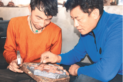 技藝上的登峰造極,次嘎把這一秘笈歸結(jié)成幾個(gè)平常的字眼:“興趣和堅(jiān)持”。從小受家族文化的熏陶,兩個(gè)兒子對(duì)傳統(tǒng)文化有著濃厚的興趣。薪火相傳也成了次嘎肩上的責(zé)任。20出頭的大兒子扎西拉達(dá)穿著白T恤,皮膚白皙、手指纖長(zhǎng)、陽(yáng)光帥氣,立志要子承父業(yè)?!案赣H告訴我即便是要做一名手工藝人,也不能放棄對(duì)文化知識(shí)的學(xué)習(xí),從小便把我送到內(nèi)地學(xué)習(xí)。現(xiàn)在,我長(zhǎng)大了,該回來(lái)了?!?扎西拉達(dá)的話(huà)語(yǔ)堅(jiān)定。