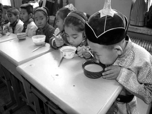 圖為孩子們在上傳承民族文化特色展示課。奶茶原為中國北方游牧民族的日常飲品,至今已有千年歷史,蒙古奶茶至今仍然是日常飲用及待客的必備飲料。陳巴爾虎旗民族小學開展了具有濃濃的民族風味的實踐活動課,通過一起熬制奶茶,學生和家長、老師們都受益匪淺。