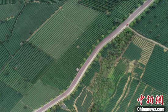 航拍貴州湄潭境內(nèi)的茶園?!■暮陚?攝
