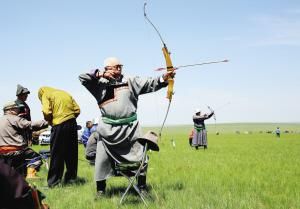 射箭是借助弓的彈力將箭射出,分為射遠(yuǎn)、射準(zhǔn)。最早用來狩獵,之后用于戰(zhàn)爭,最后才成為體育運動。在蒙古高原的很多巖畫里,都有射箭的圖案。與馬的馴服使用一樣,弓箭的使用增加了人類征服自然的威力和自信。